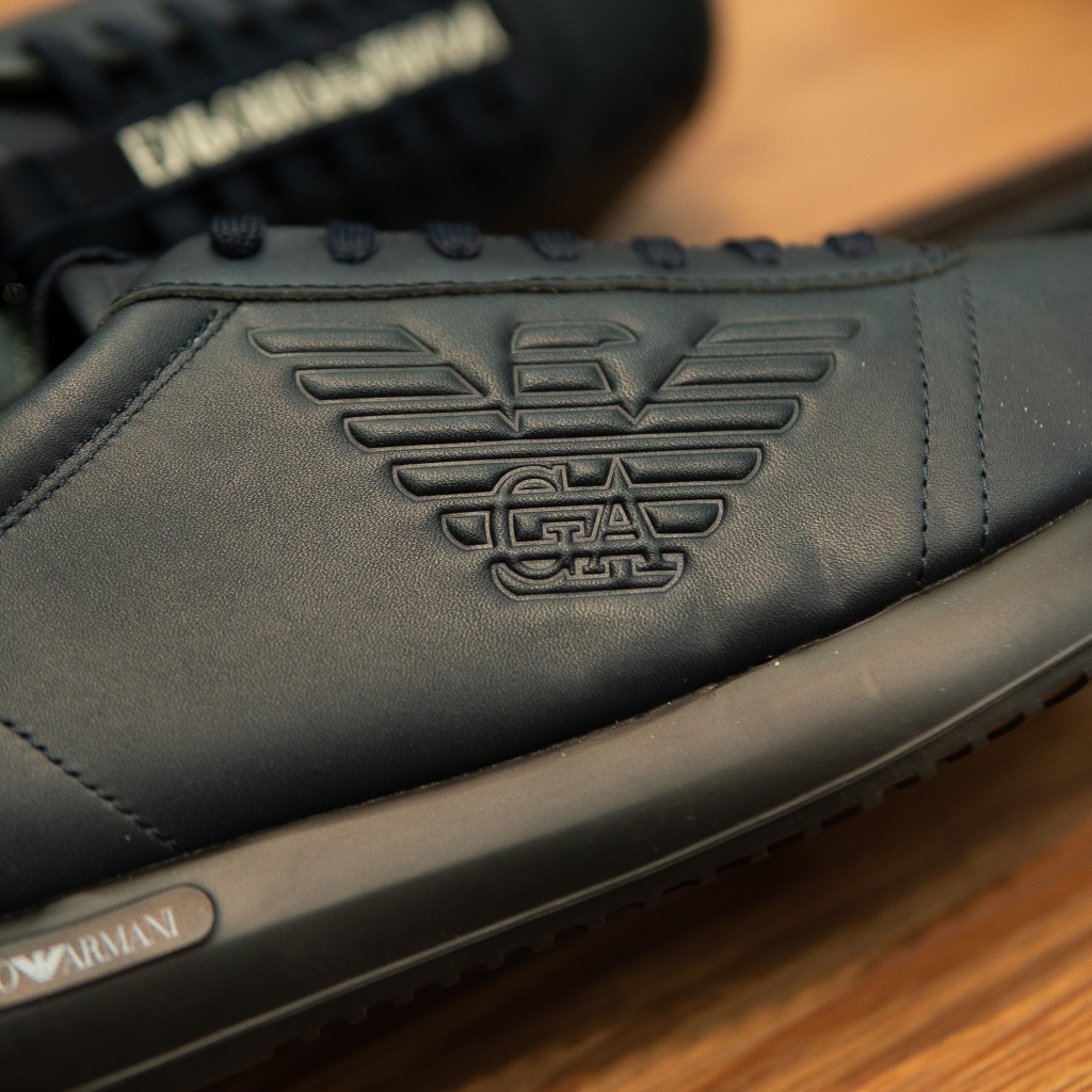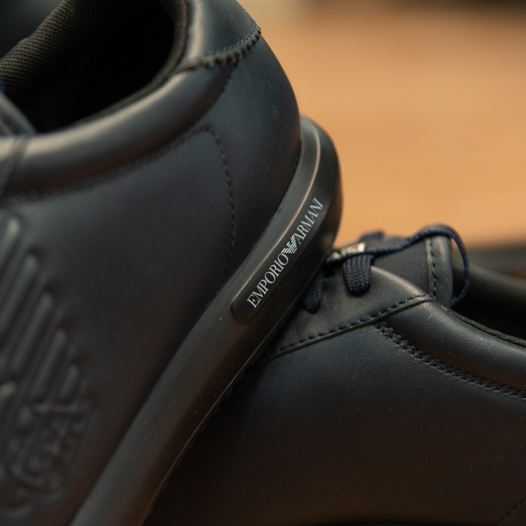 Giày EMPORIO ARMANI da đen full , logo "GA" sườn , gót đế chữ nhỏ ghi
