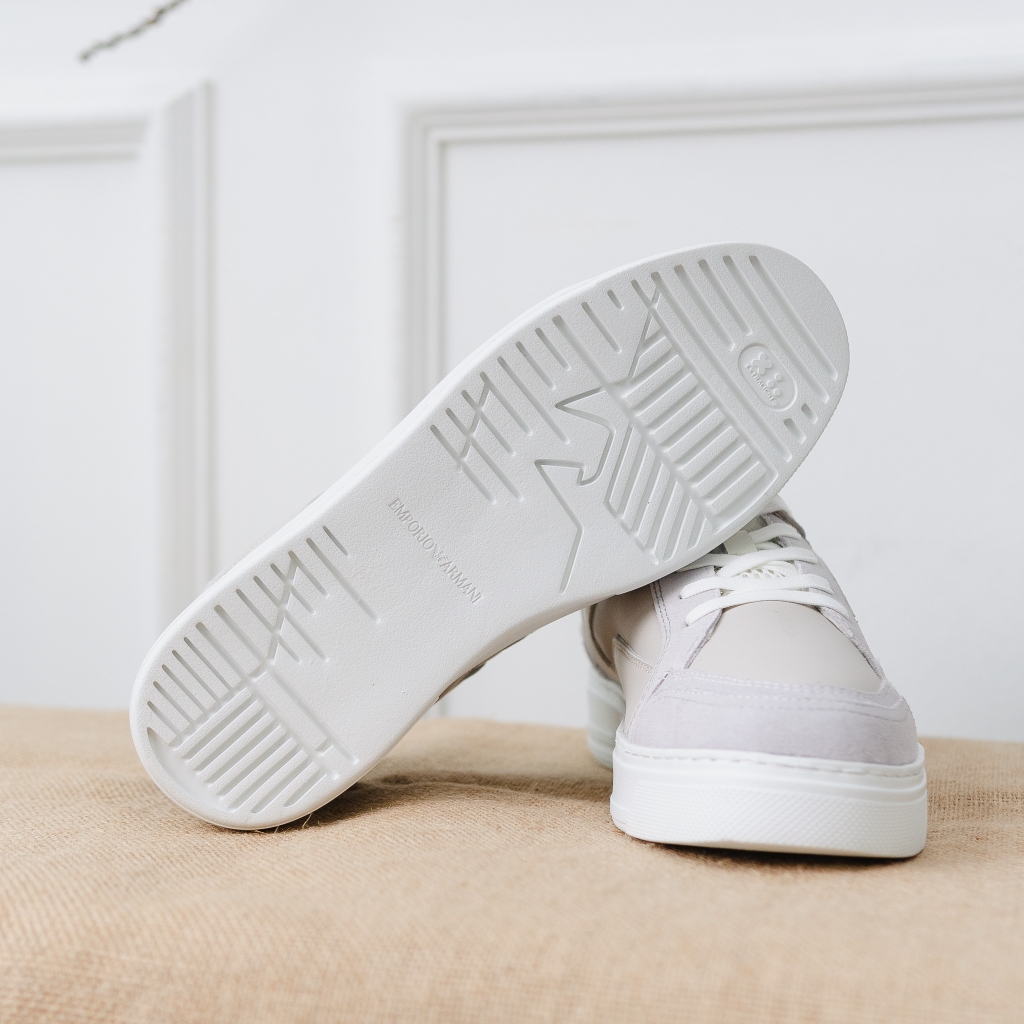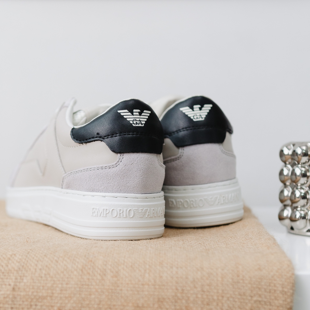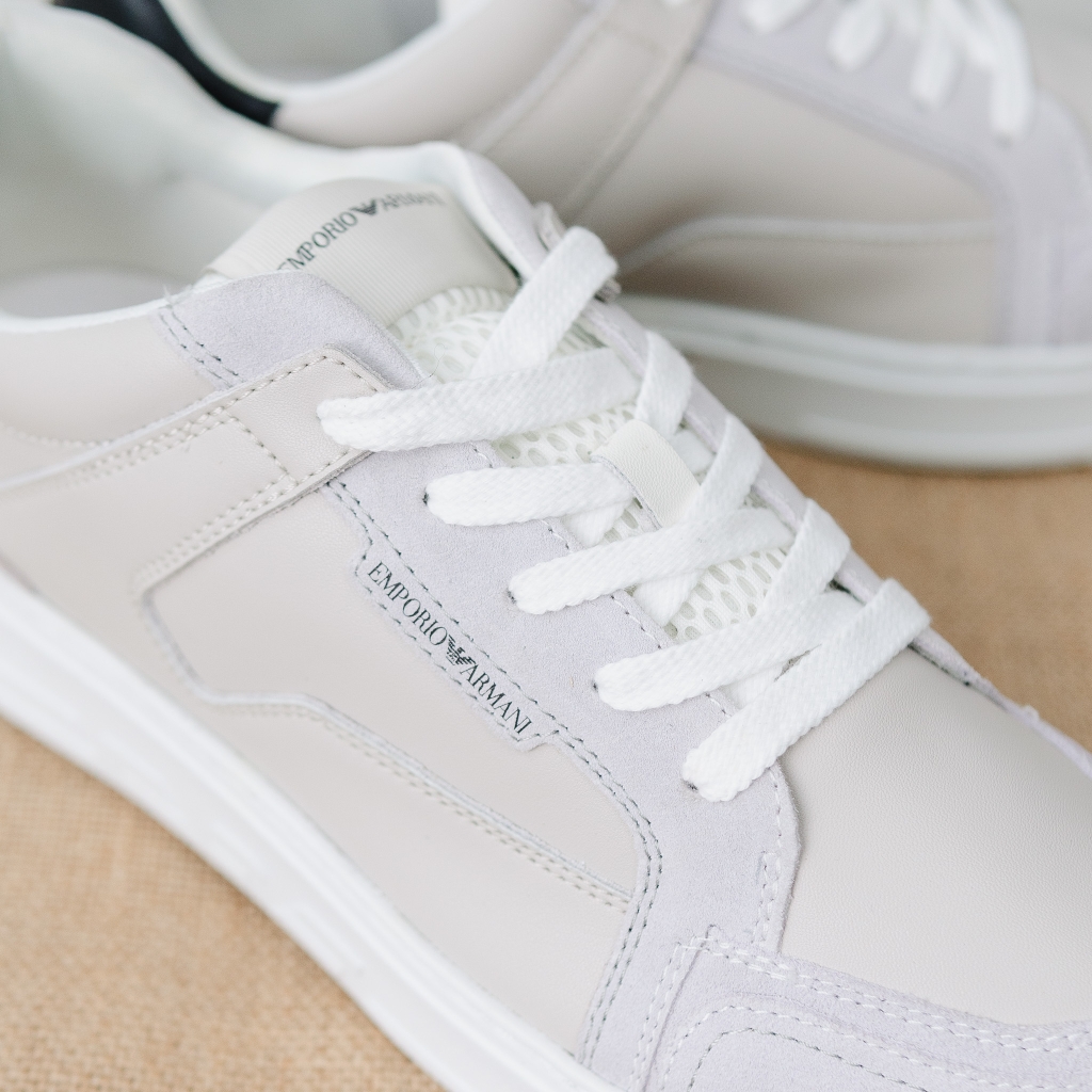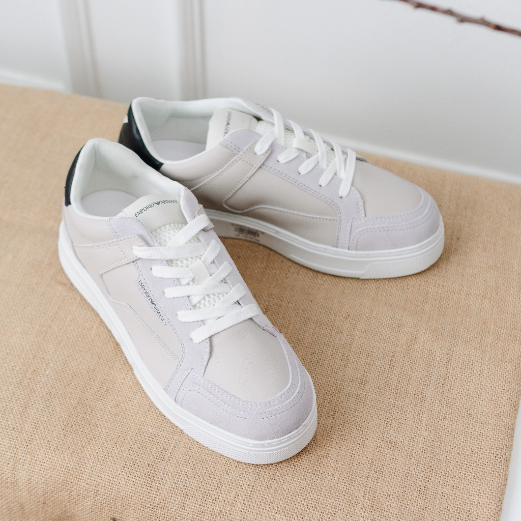 Giày EMPORIO ARMANI da trắng mix da lộn be , gót da đen , đế trắng mix logo nổi