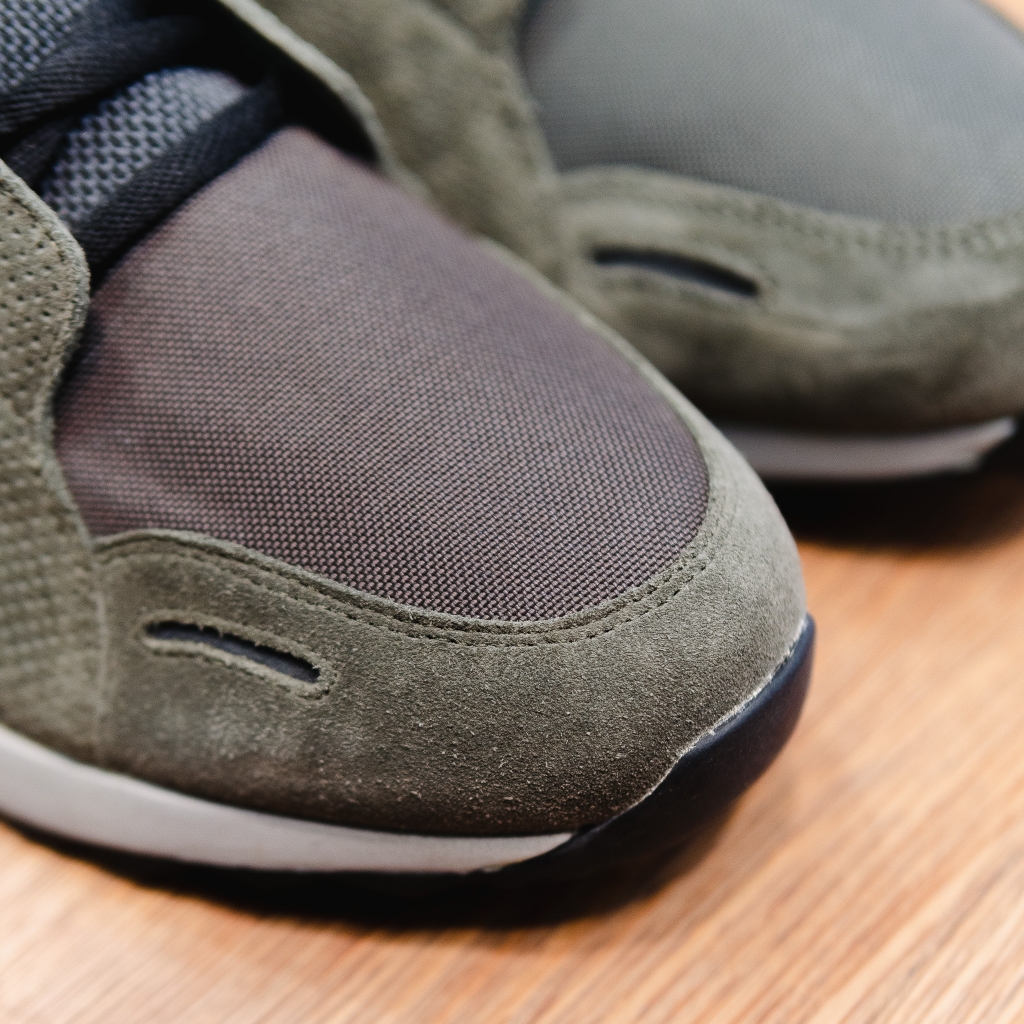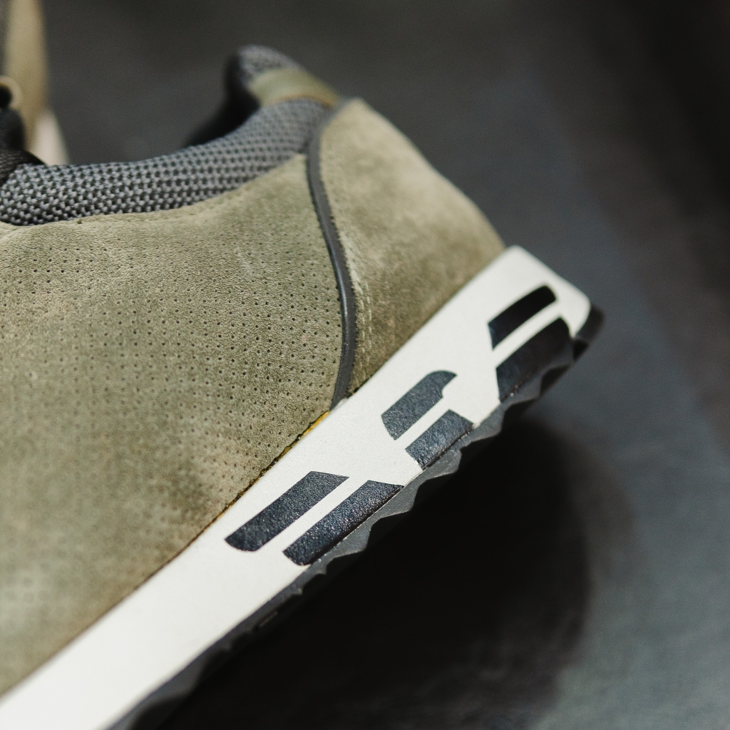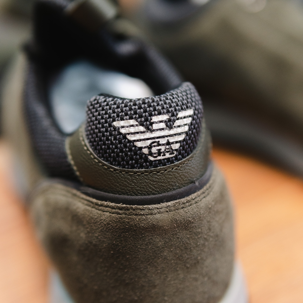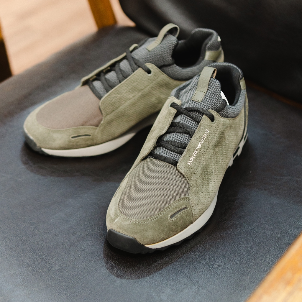 Giày EMPORIO ARMANI vải lưới xanh rêu , mũi vải nâu , đế ghi logo đen to